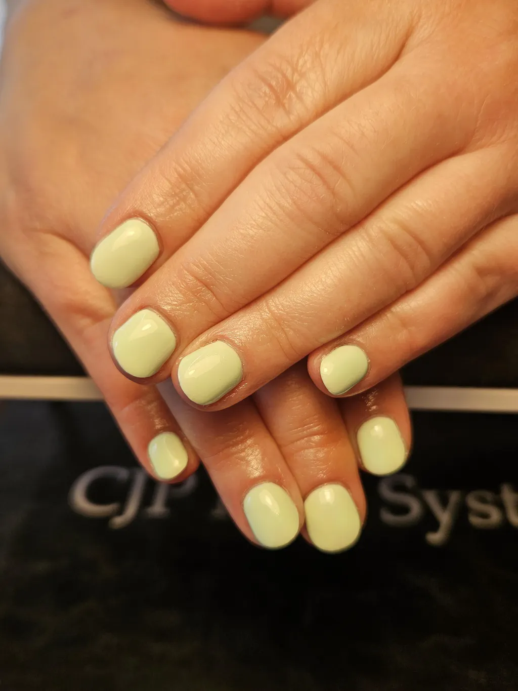 On top of enhancements: Gel polish can be applied straight onto the enhancement. Apply one or two coats (depending on desired coverage). Then cure and apply top coat.
