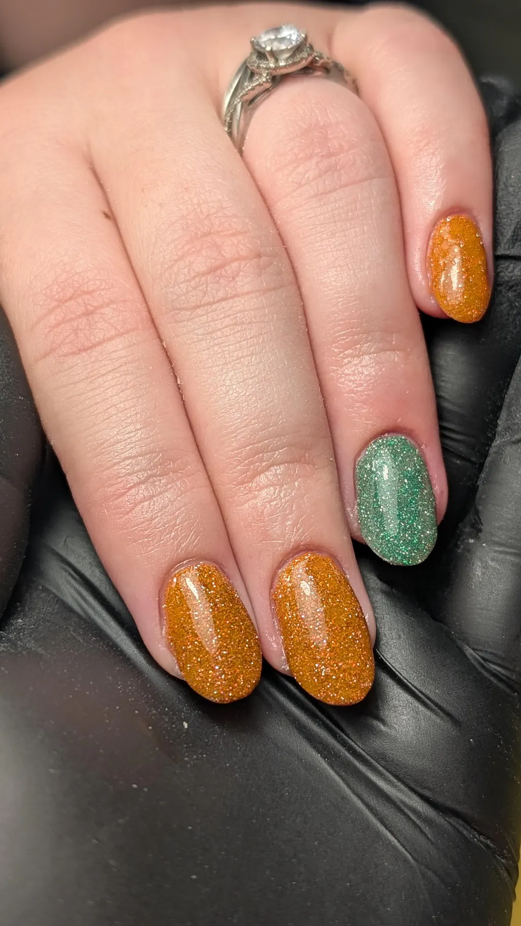 On top of enhancements: Gel polish can be applied straight onto the enhancement. Apply one or two coats (depending on desired coverage). Then cure and apply top coat.