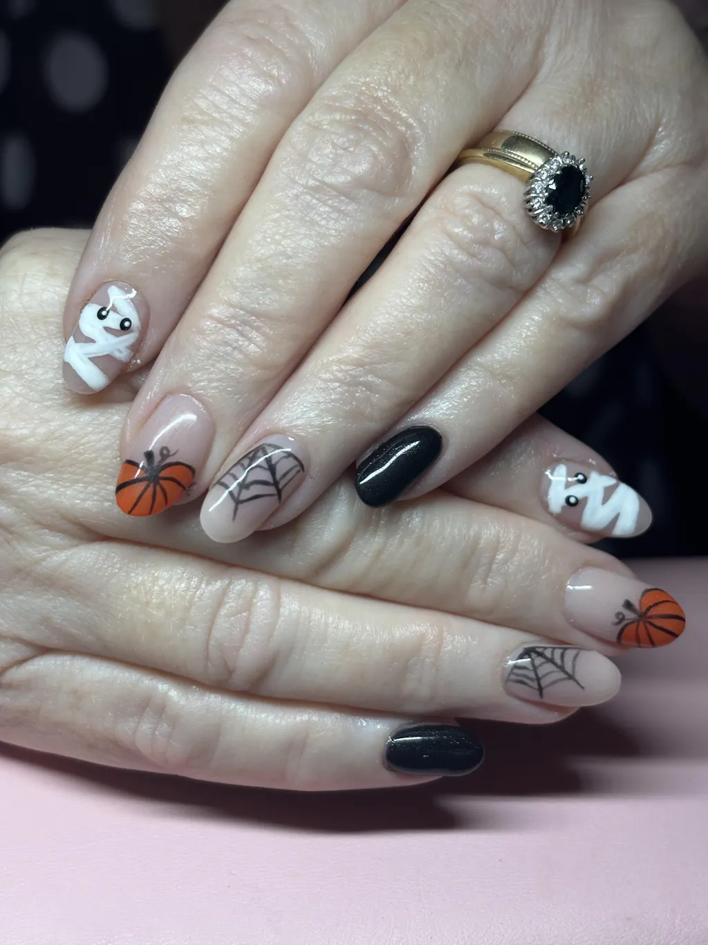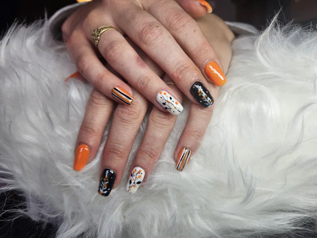 On top of enhancements: Gel polish can be applied straight onto the enhancement. Apply one or two coats (depending on desired coverage). Then cure and apply top coat.